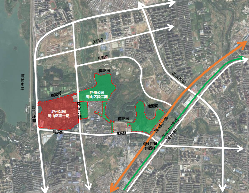 廬州公園蜀山段一期為懷寧北路以西地塊,即原市苗圃范圍,設計面積約39.9公頃(598.5畝),廬州公園蜀山段原市苗圃地塊設計范圍為南淝河以南,清溪路以北,西二環(huán)以東,懷寧北路以西的區(qū)域,總面積39.9 公頃(598.5畝)。一期周邊分布著綠泉園林(1.1公頃)、司法廳(1.2公頃)、奧宇科技(億博學校0.5公頃)、公交停保場(1.2公頃)等用地。