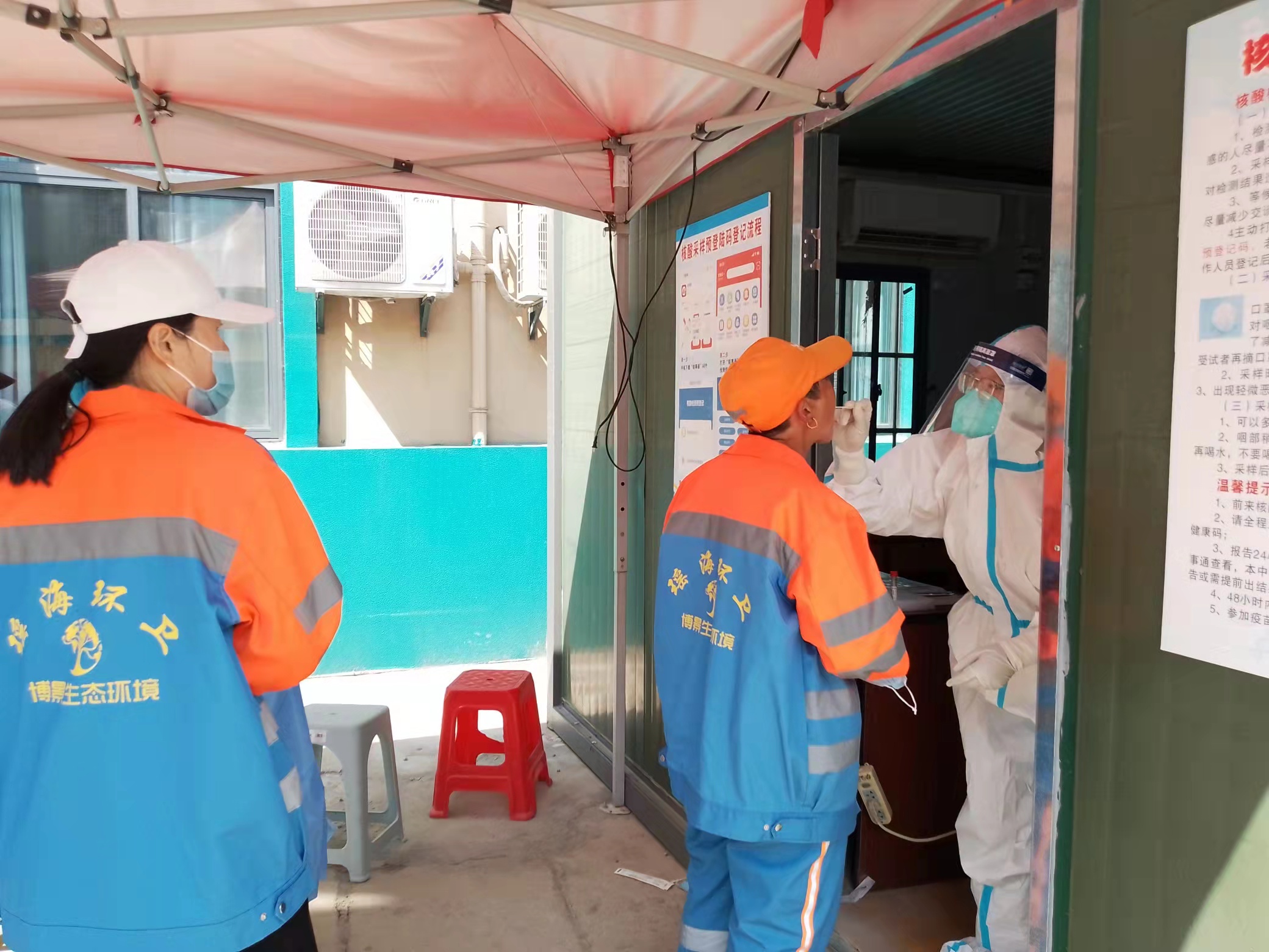 同時也督促環衛工人進行核酸檢測;確保每位員工進行工作時核酸結果正常。核驗兩碼,佩戴好口罩和手套、穿上工作服,環衛工人方可上崗工作。