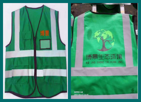 河道工作環(huán)境復(fù)雜,結(jié)合工作性質(zhì),按照管理要求,博景生態(tài)環(huán)境將綠化服裝統(tǒng)一化,增加反光條,保證綠化工作的正常開(kāi)展。在施工中,注重一線工人的人身安全,分發(fā)統(tǒng)一亮色雨衣,確保在惡劣天氣下的工作有序開(kāi)展;給每位工人配備安全設(shè)施,保證安全為第一生產(chǎn)要素。