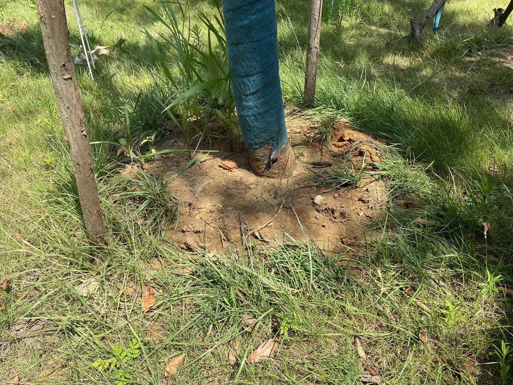 夏季氣溫高,水分蒸發(fā)快,土壤易缺水,苗木在這個(gè)時(shí)候最為容易受旱。大部分苗木在夏季少雨干旱時(shí)最好十天灌水一次,時(shí)間最好在早晚進(jìn)行,澆水時(shí),不但要澆透土壤,而且樹體及其包裹物(如包扎樹干的草繩等)都要澆濕。出水口不能直接噴灑在苗木根部土球,水壓過大容易沖散根部土壤,導(dǎo)致土球沖散根部外露,易干枯。重復(fù)多遍噴灑葉面,水慢慢滲透泥土效果最佳。