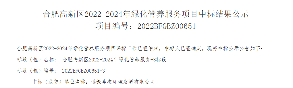 該項(xiàng)目為合肥高新區(qū)2022-2024年綠化管養(yǎng)第 3 標(biāo)段,養(yǎng)護(hù)范圍為 312 國(guó)道以西、 長(zhǎng)江西路以南、長(zhǎng)寧大道以東(含)(總暫定面積 320.69 萬(wàn)平方米)。