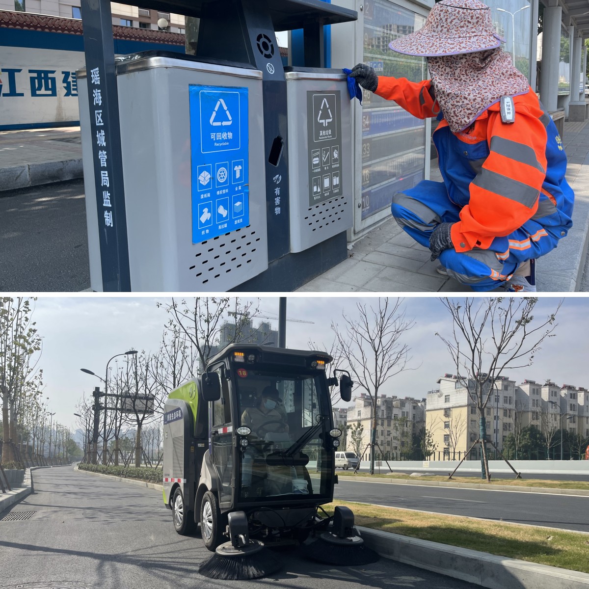 為確保市一級道路垃圾桶果皮箱點位規(guī)范化合理化,龍崗項目重新配置規(guī)劃240L垃圾桶和果皮箱的位置。制定了垃圾桶和果皮箱設(shè)置的標(biāo)準(zhǔn)和規(guī)范,對各類擺放不規(guī)范的垃圾桶進(jìn)行大力整改。每日進(jìn)行2次環(huán)衛(wèi)設(shè)施擦洗工作并及時清理果皮箱內(nèi)垃圾。外表整潔無污物、外表無亂涂貼,垃圾分類標(biāo)識完好。