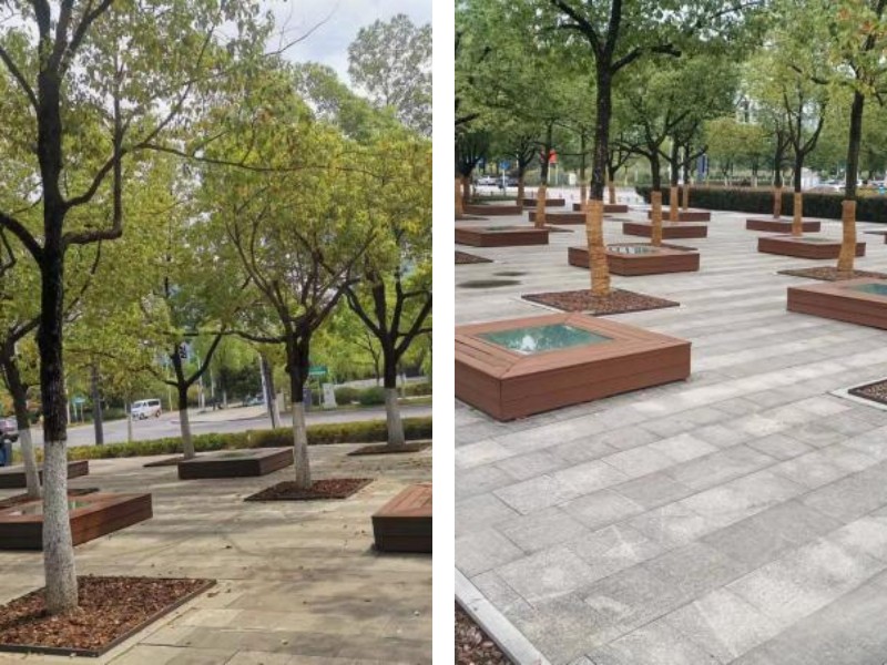 為進一步完善公園廣場功能“齊配套”,給市民提供更加安全、美觀、有序的休閑娛樂場所,博景生態環境對市民廣場內老化、破損設施進行翻新更換。其中,更換陳舊廣告牌12個,健身器材破損維修7處,坐凳打磨出新100個,破損鋪磚更換維修約300㎡;并對市民廣場入口處樹池、竹木地板進行提升改造,其中樹池改造撒覆蓋物260株,市民廣場竹木地板更換為更加合適的脂塑木地板,更換面積約907m²。