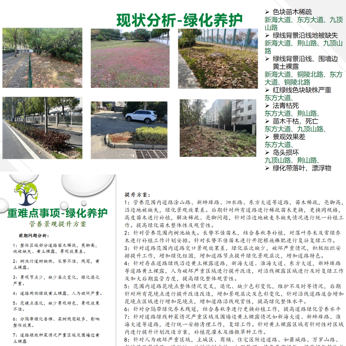 為進一步提升道路綠化效果,在項目進場準備階段就已經開始了對銅陵北路提升計劃。七里塘區域現場負責人親自去現場測繪未提升區域的面積,制定設計方案以及苗木采購清單。本著勤懇負責的態度希望在道路綠化工作上做的更好。