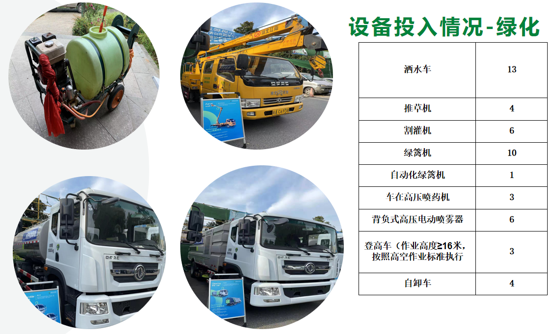 新站高新區道路清掃保潔、綠化管養等城市管理服務第二包項目為正式運營,按照要求投入機械設備。