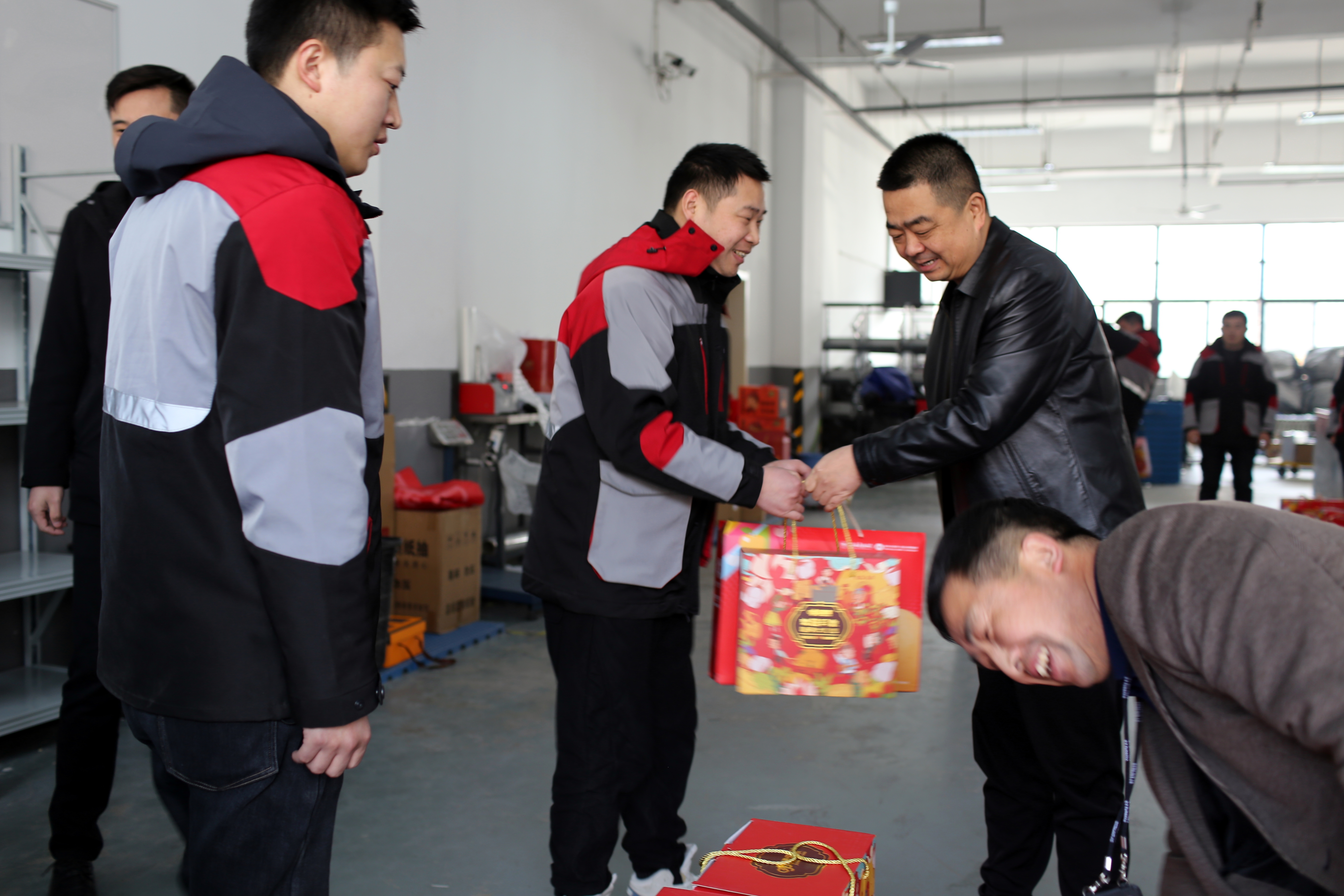 王兵書記首先代表蜀山區(qū)總工會向在場的每一位快遞員表達了誠摯的節(jié)日問候,對他們的辛勤工作和無私奉獻表示了高度的贊賞和感謝。蘇文安主任則強調了蜀山經(jīng)濟技術開發(fā)區(qū)總工會一直以來對一線勞動者的關懷與支持。他表示,開發(fā)區(qū)總工會將繼續(xù)關注和支持包括順豐速運在內的各行各業(yè)的發(fā)展,為一線勞動者提供更多的關愛與幫助。張虎董事長作為此次慰問活動的發(fā)起者之一,更是對快遞員們的辛勤付出表示由衷的敬佩。張虎董事長表示快遞員們是城市的“擺渡人”,是這個時代最美的風景線,正是因為有了他們的堅守與奉獻,才讓這個春節(jié)更加溫暖、更加美好。