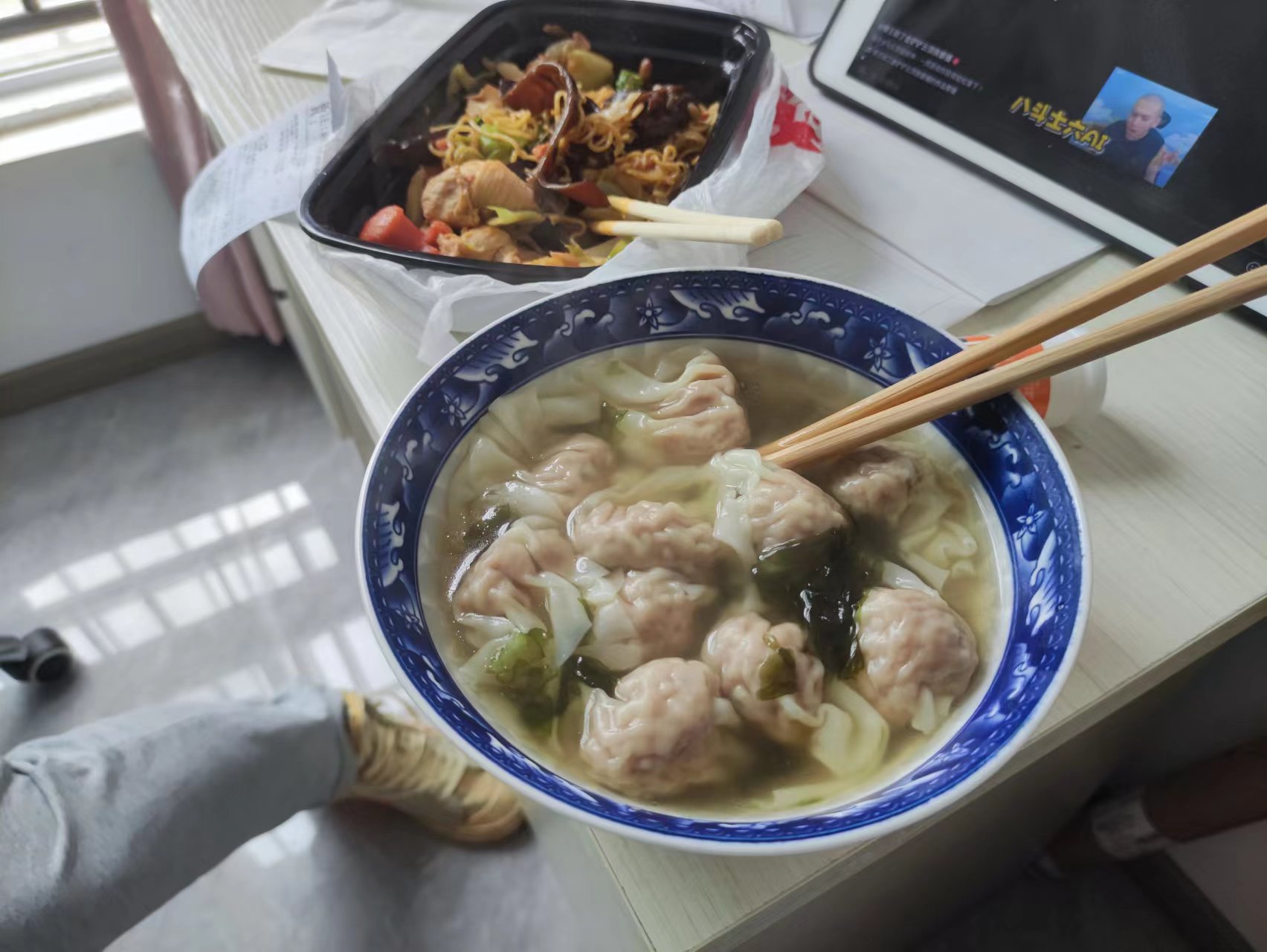 我最愛(ài)媽媽包的混沌,皮薄餡多,每個(gè)都晶瑩剔透。高考前的那段時(shí)間每天都學(xué)習(xí)到很晚,媽媽每次都會(huì)給我煮上一碗混沌,到我吃的時(shí)候溫度剛剛好,現(xiàn)在每次回家離家,媽媽也都會(huì)給我煮一碗混沌。其實(shí),每次包餛飩要揉面、搟皮、剁完餡還要一個(gè)個(gè)包起來(lái),做起來(lái)挺麻煩的,但是因?yàn)槲蚁矚g,所以每次回家媽媽都會(huì)包給我吃,這一個(gè)個(gè)混沌也是媽媽對(duì)我不言說(shuō)的愛(ài)。